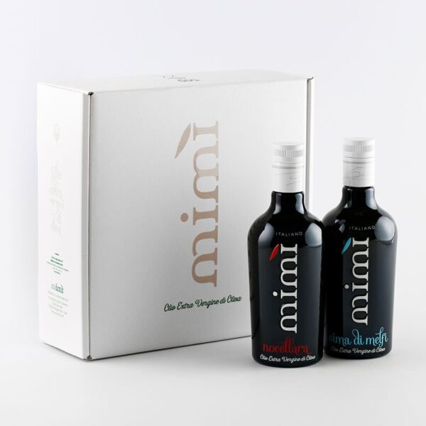 一份優雅又美味的禮物,無論送禮自用都令人喜愛 —— 以精緻紙盒包裝我們卓越的 Mimì 特級初榨橄欖油。 此禮盒可容納兩瓶標準 500 毫升的特級初榨橄欖油,您可選擇喜愛的風味填裝。 請至於常溫陰涼處保存。